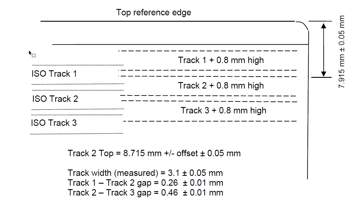 低抗磁(LoCo): 矯頑力范圍 typically 250-650 Oe。信號幅度標(biāo)準(zhǔn)范圍通常為 Track 1: 50-120mV; Track 2/3: 70-210mV。 (注:具體范圍需參照最新ISO標(biāo)準(zhǔn)或客戶要求)